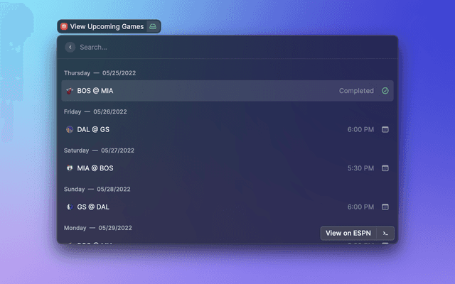 View upcoming NBA games