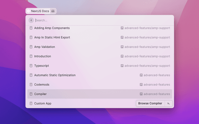 Efficiently search NextJS documentation from Raycast.